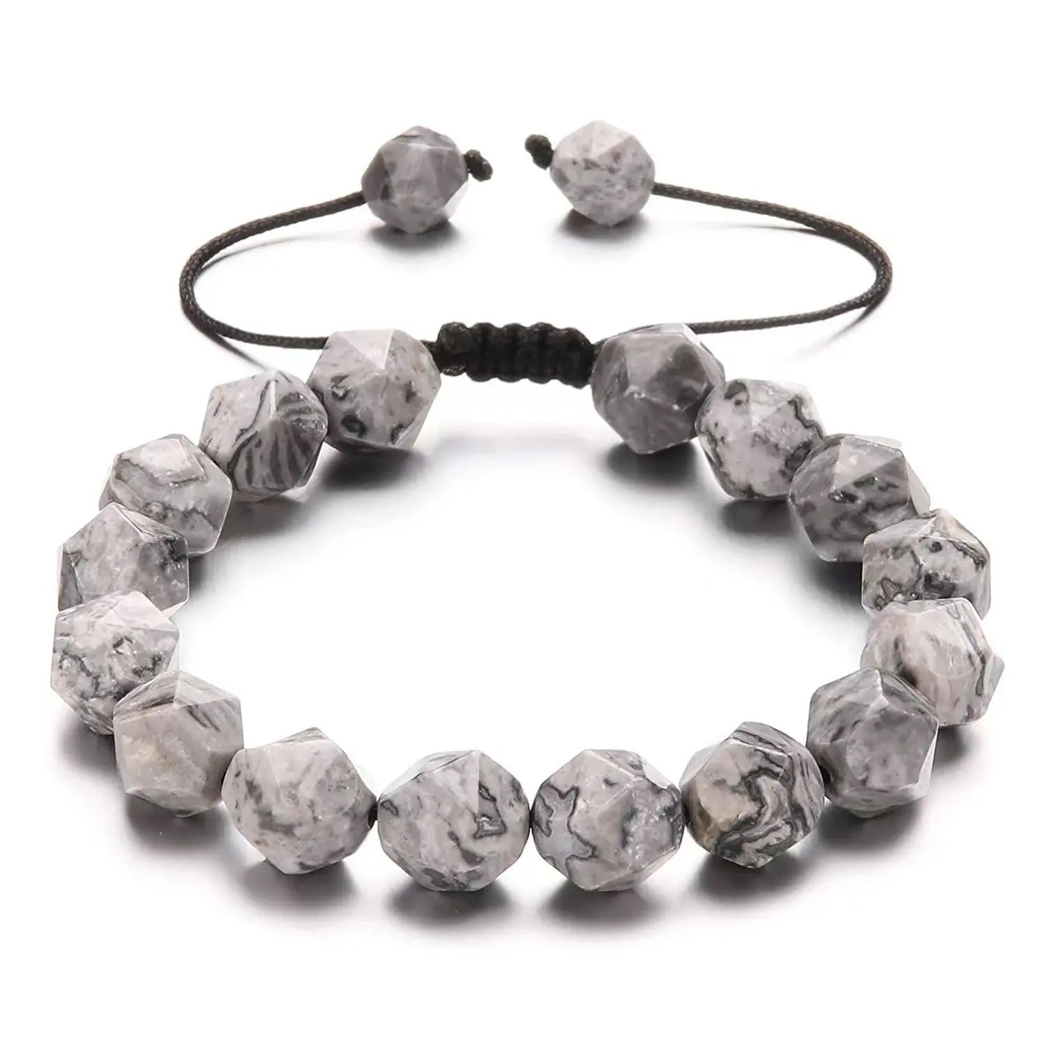 ✨ Stylish energy with natural power. This Faceted Beaded Bracelet blends the protective strength of Tiger Eye with the grounding energy of Map Stone, creating a unique and meaningful accessory. The faceted cut adds extra shine, while the braided adjustable design ensures a comfortable fit for both men and women.