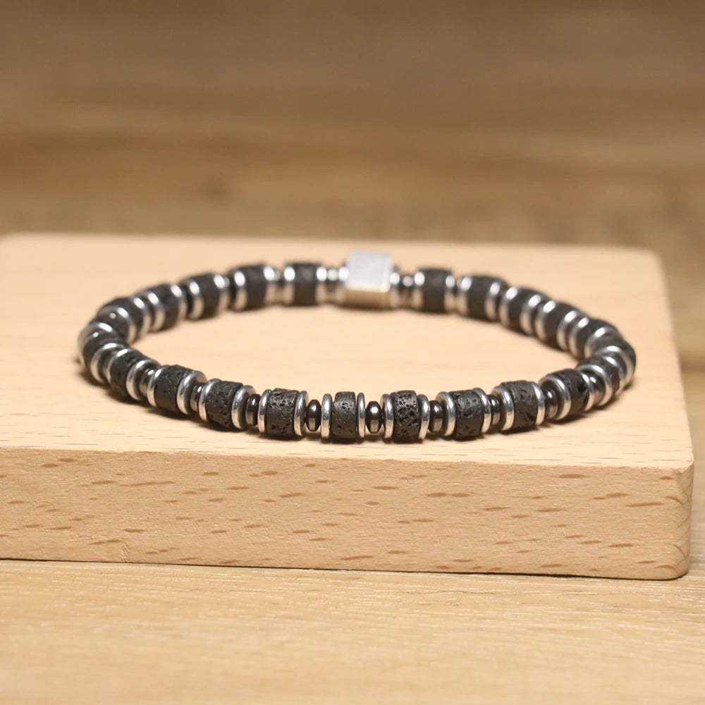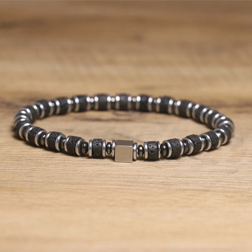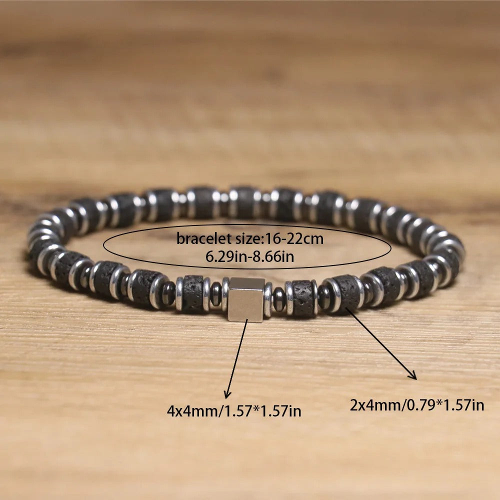 🔥 Bold, modern, and full of energy. This Geometric Natural Stone Bracelet combines rugged lava beads with a sleek stainless steel cube charm, creating the perfect balance of strength and style. The elastic design ensures a comfortable fit, making it ideal for both men and women.