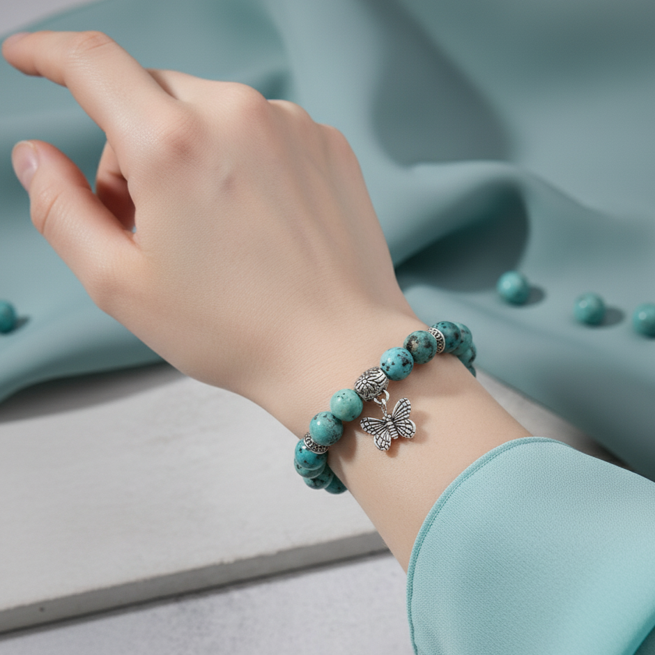 Elastic Beaded with Butterfly Charm Stone Bracelet